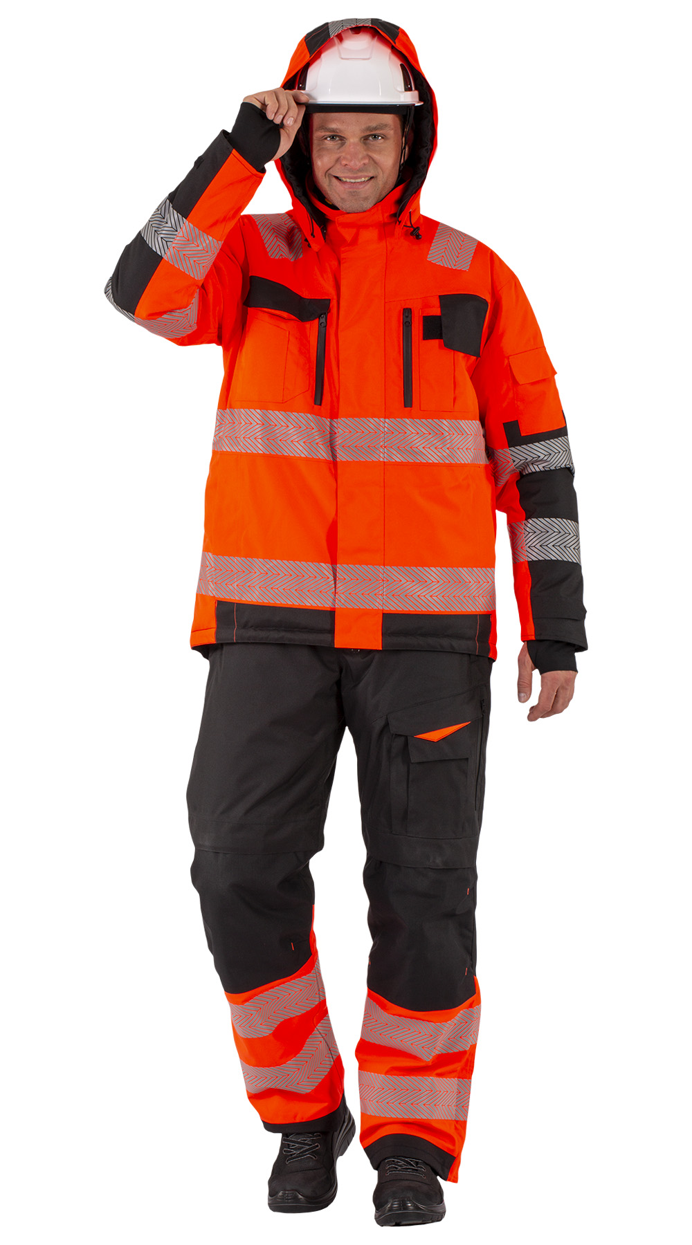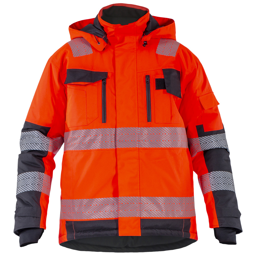 Карманы: верхние прорезные с застежкой на молнию, нижние боковые с застежкой на молнию, внутренние - карман для документов на молнии, нижние для документов больших форматов, нагрудный карман для рации.