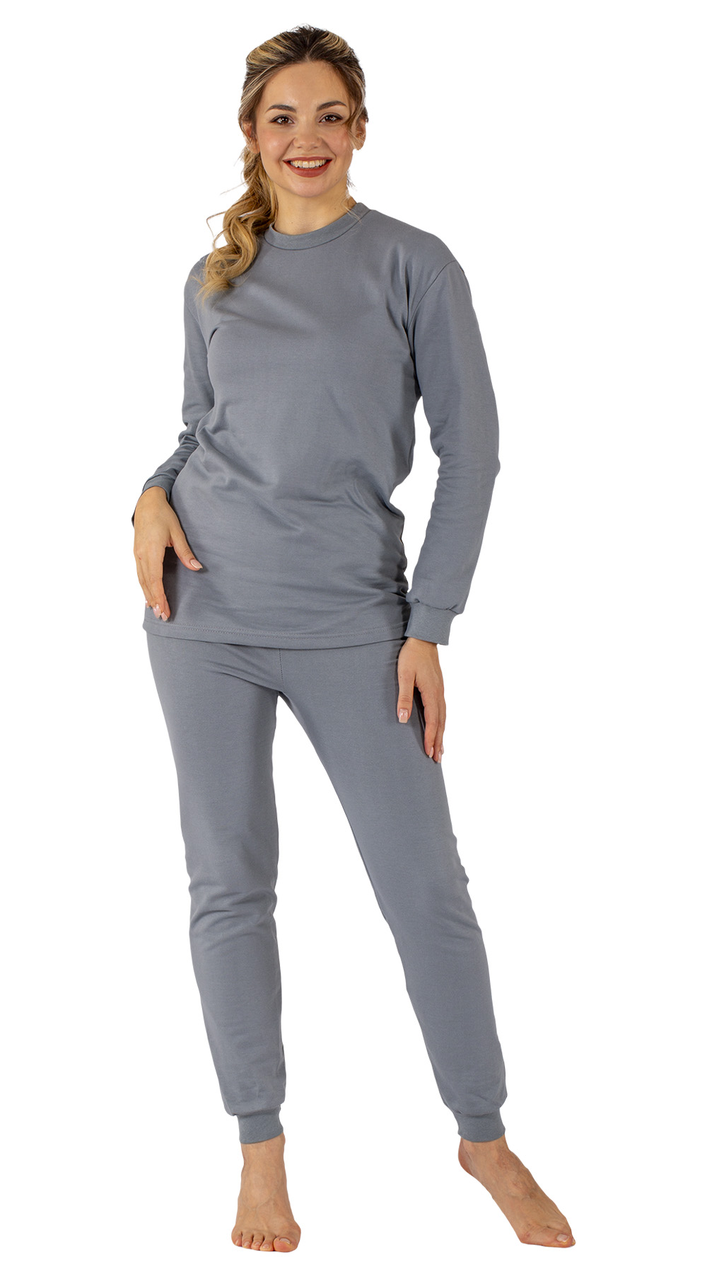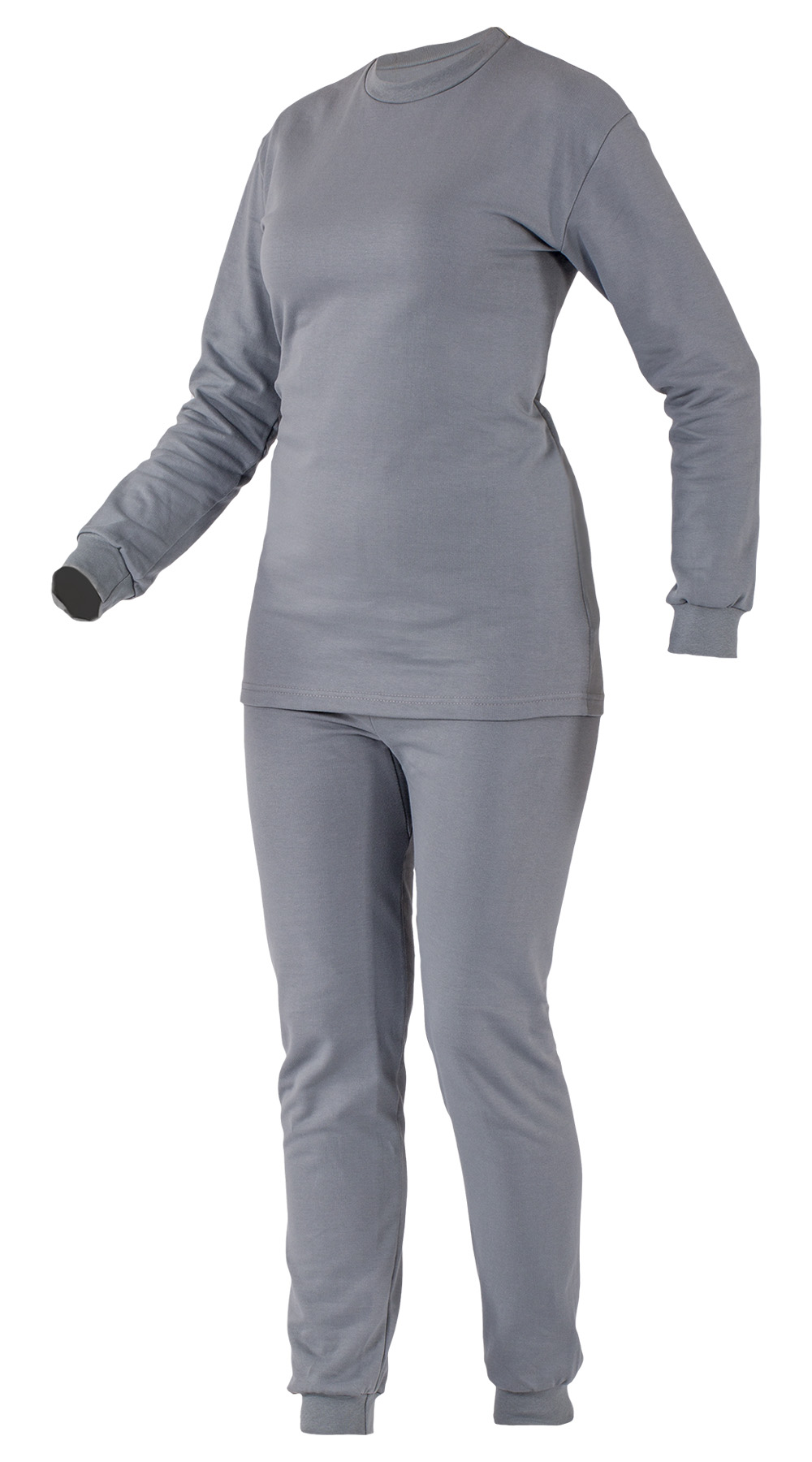 Утепленная модель серого цвета. Женское нателье белье можно надеть под рабочий костюм, повседневную или спортивную одежду в холодную погоду. Оно служит дополнительным утепляющим слоем и поддерживает комфортный микроклимат в пододежном пространстве.