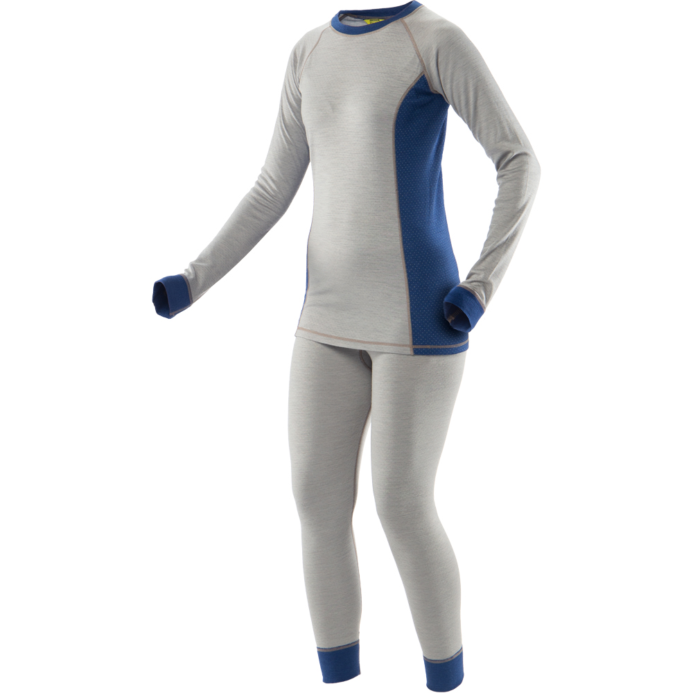 Комплект МОНБЛАН ЛЕДИ состоит из фуфайки и панталон серого цвета с синими вставками. Они отлично сохраняют тепло и обеспечивают полную свободу движений.