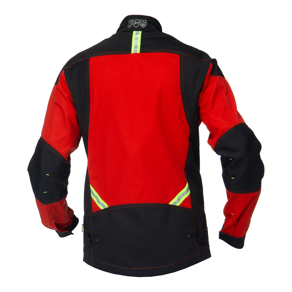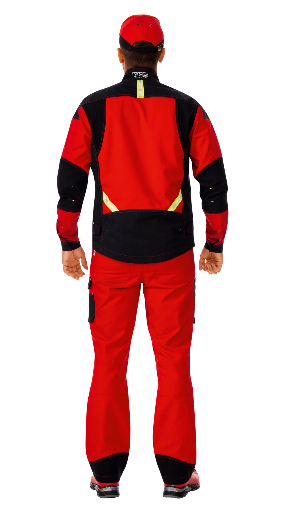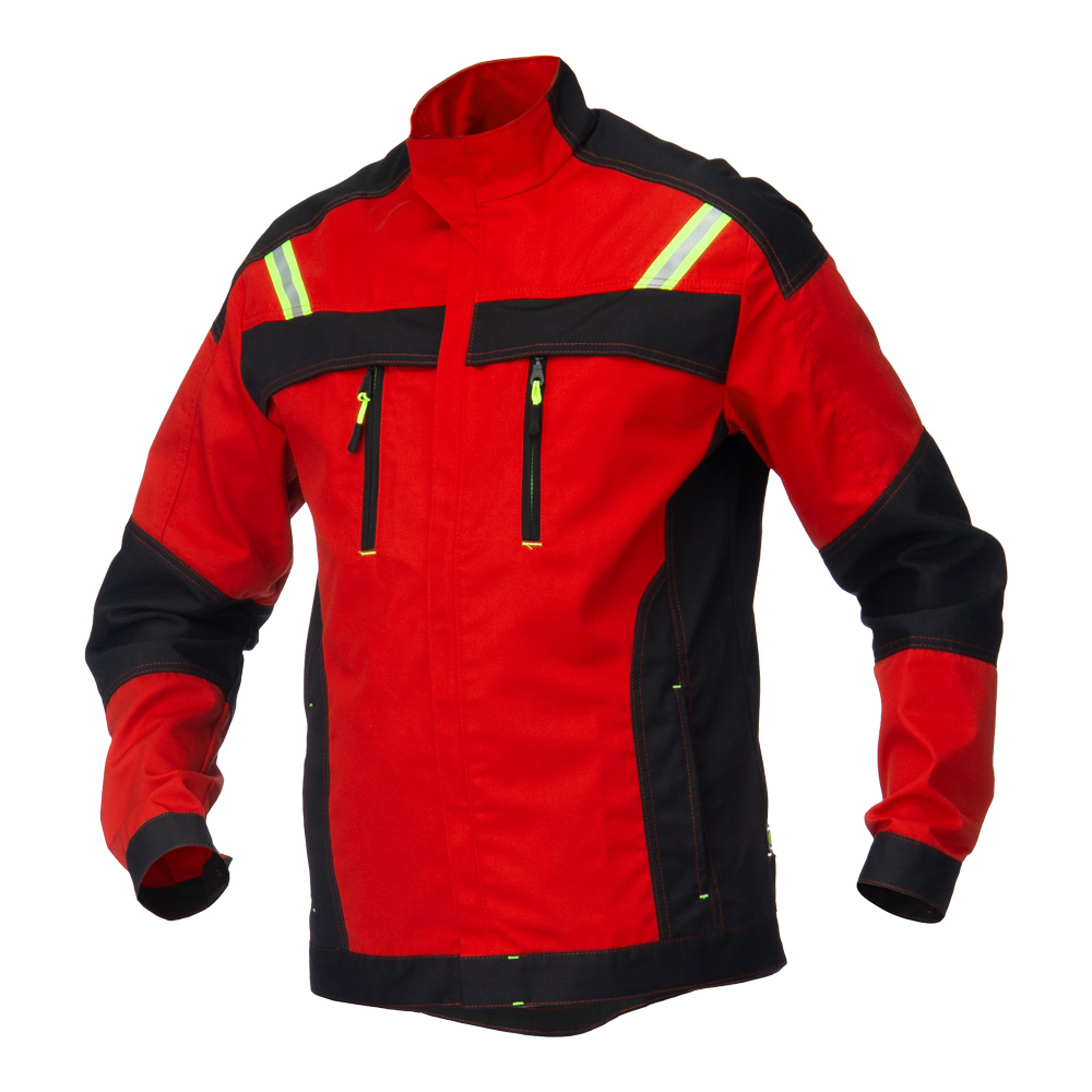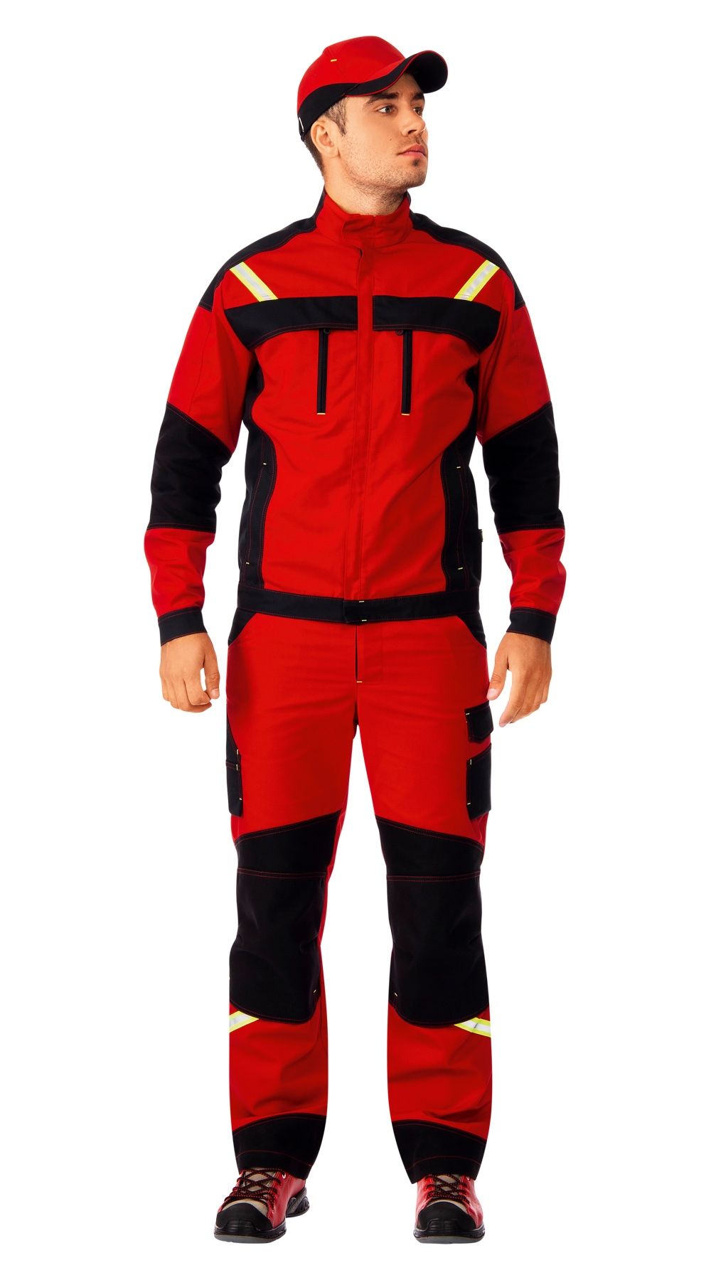 Мужская куртка УРАН в ярко-красной расцветке с контрастными черными деталями — стильное решение для комфортной работы в теплое время года.