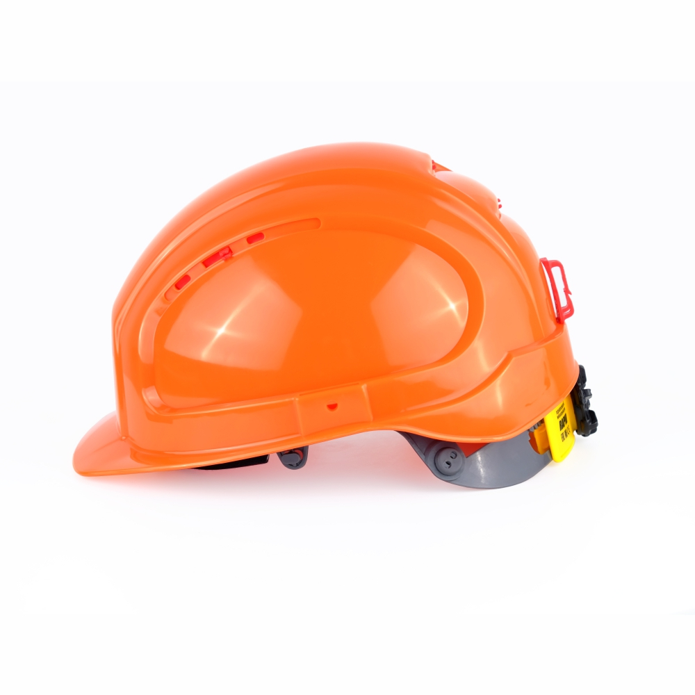 Паз в корпусе каски для крепления держателя SMART для фиксации на каске наголовной ленты очков или фонарей. SMART является УФ-индикатором старения каски.