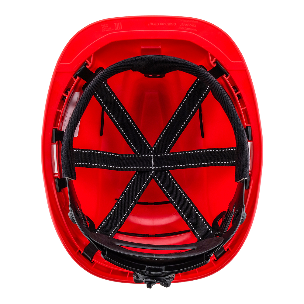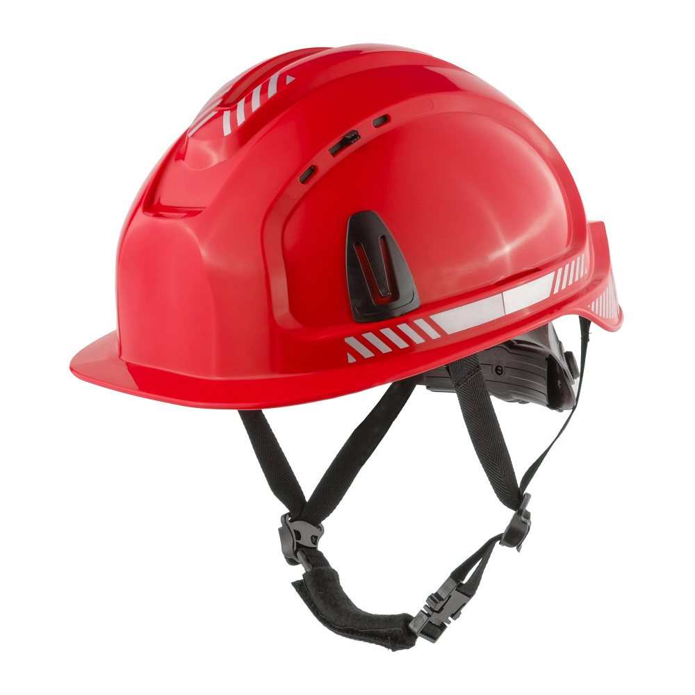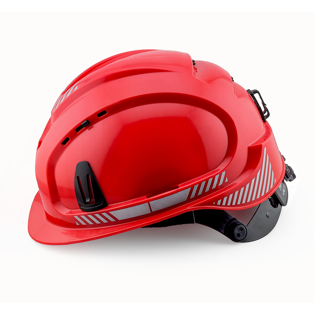 Укороченный козырек не ограничивает обзор. Световозвращающие элементы со всех сторон корпуса каски. Увеличенная несущая лента и храповой механизм из высокопрочного термостойкого материала обеспечивают четкую комфортную фиксацию каски на голове пользователя