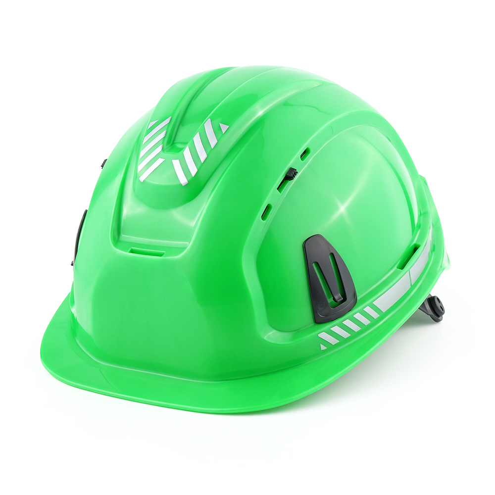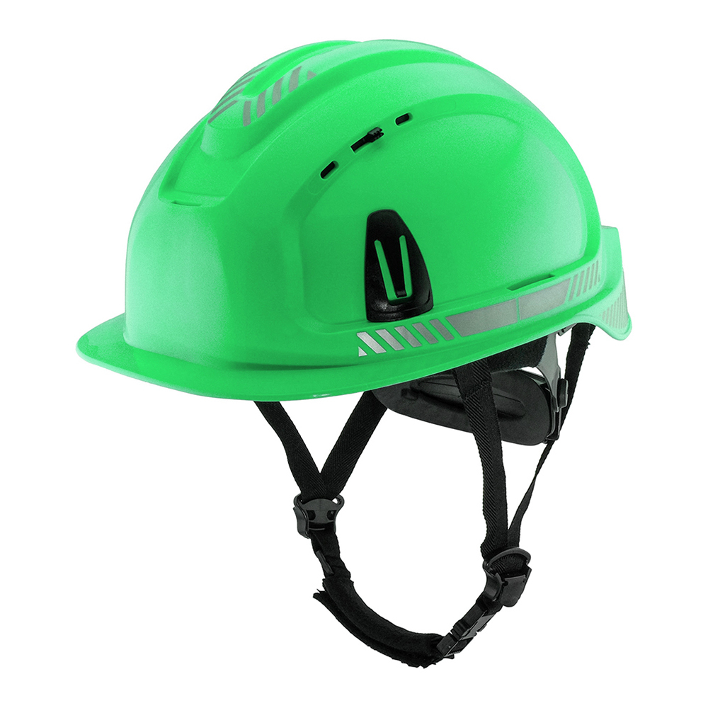 Укороченный козырек не ограничивает обзор. Световозвращающие элементы со всех сторон корпуса каски. Увеличенная несущая лента и храповой механизм из высокопрочного термостойкого материала обеспечивают четкую комфортную фиксацию каски на голове пользователя
