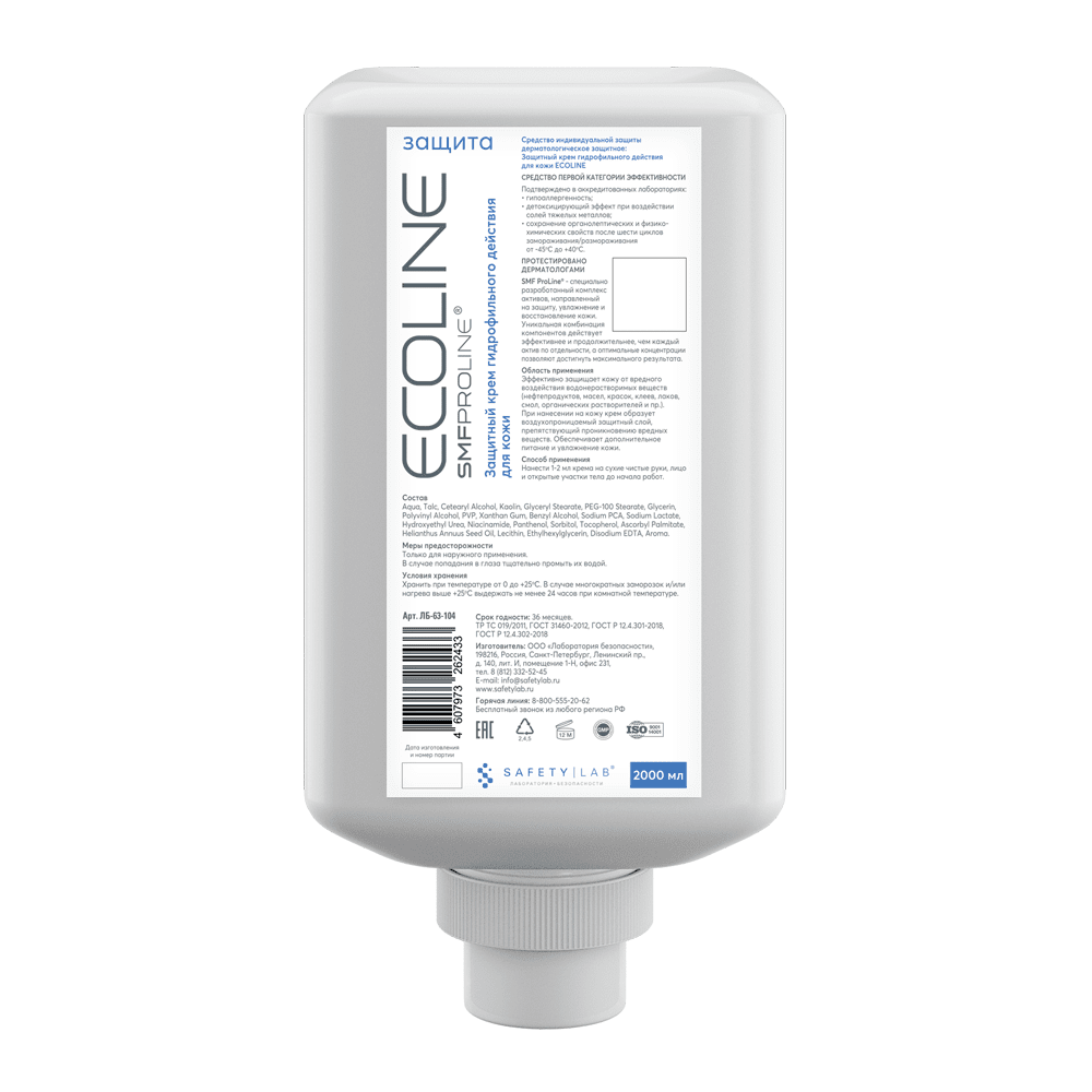 Защитный крем для кожи, эффективно защищает кожу от вредного воздействия водонерастворимых веществ (нефтепродуктов, масел, красок, клеев, лаков, смол, органических растворителей и пр.). При нанесении на кожу крем образует воздухопроницаемый защитный слой, препятствующий проникновению вредных веществ. Обеспечивает дополнительное питание и увлажнение кожи. Рекомендуется использовать совместно с очищающими средствами ECOLINE.